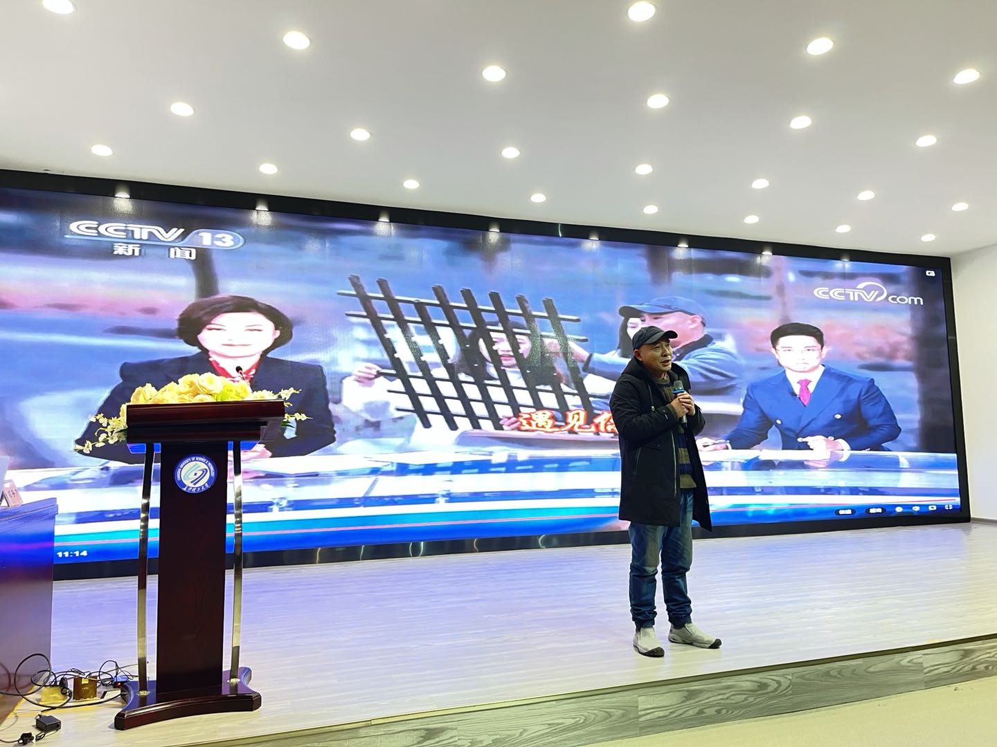 首先,大会由学院“三系一部一中心”主任述职。数字媒体艺术系主任朱诗源、工艺美术系主任王清、环境设计系主任肖志高和理论教学部主任李正庚分别从专业建设、学科建设、师资建设、教学和科研成果等方面汇报了2020年取得的成绩和工作中的不足。实验中心李颖介绍了实验教学工作、实验室改造工作和配合学院完成的其他工作。其次,全体教职工集中观看中央电视台采访邓寒松的新闻报道,并邀请邓老师分享在枧杆山村为村民免费做庭院设计台前幕后的故事。