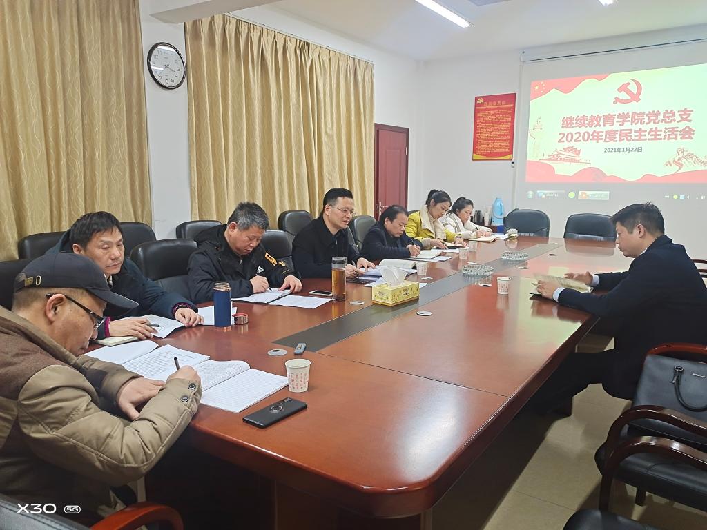 1月22日下午,继教学院党总支班子召开2020年度民主生活会。纪检监察处长方文彬到会指导,院总支书记何纯芳主持,总支班子成员参加。