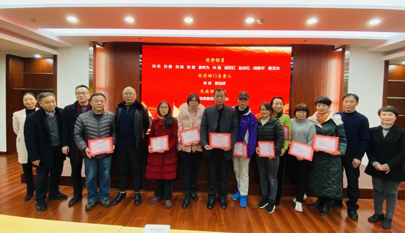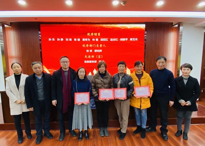 副馆长张颖宣读了《图书馆党总支关于表彰2020年度优秀共产党员、优秀党务工作者的决定》、《图书馆关于表彰2020年度先进部室、优秀部门负责人及优秀馆员的决定》,蔡焰辉、邓婕等18位同志荣获本年度优秀荣誉;信息服务部、馆办公室荣获先进部室。随后,馆领导对获奖人员进行了颁奖。