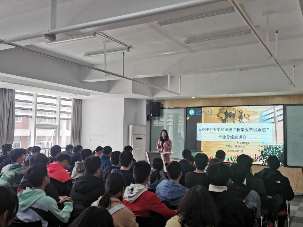为进一步做好永利官网工科类专业拔尖创新人才培养工作,根据《2019级“教学改革试点班”学生专业分流与培养工作方案》的通知要求,3月12日,机电类和土木类教改班专业分流宣讲会分别在国际学院402和404多媒体教室举行。教务处副处长蒋菲、来自电气、汽机、能动、土木、交通、水利等6个专业学院的18位领导和教师代表、以及国际学院相关老师参加。宣讲会由教改班辅导员马玉文、教务干事罗帅主持。