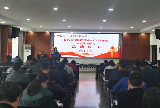 3月23日下午,水利工程学院在工三B319举行庆祝中国共产党成立100周年暨党史学习教育启动仪式。全体教职工参加本次启动仪式。