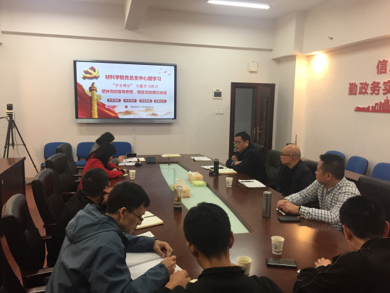 4月26日下午,材料学院在新能源大楼1-317召开党总支中心组(扩大)“学史增信:坚持党的指导思想,增强党的理论自信”专题学习研讨会,会议由院党总支书记张国强主持,校党史学习教育督导曾令球书记到会指导并作点评,学院领导班子和各党支部书记参加会议。