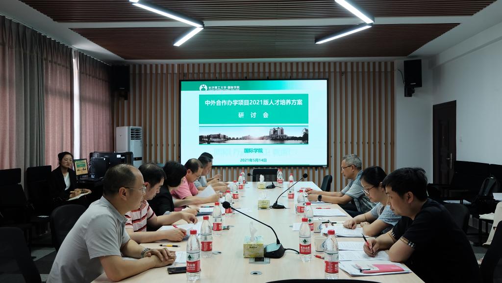 5月14日下午,土木工程专业(中外合作)、电气工程及其自动化专业(中外合作)以及机械设计制造及其自动化专业(中外合作)2021版人才培养方案修订研讨会在国际学院416会议室召开。本次研讨会共邀请了校内外专家以现场讨论与函评结合的方式进行。中南大学土木工程学院副院长易亮,永利官网教务处处长陈瑜、国际学院院长吴迪龙、电气与信息工程学院教学副院长唐欣、青年骨干教师张静,土木学院专业老师陈历强,汽机学院机电工程系主任陈书涵、国际学院教务办相关老师参加会议。中南林业科技大学班戈学院副院长侯茂章、永利官网外国语学院副院长黄坚、数统学院副院长龚红仿则以函评方式对此次人才培养方案修订提出了专业相关建议。会议由副院长秦卫星主持。