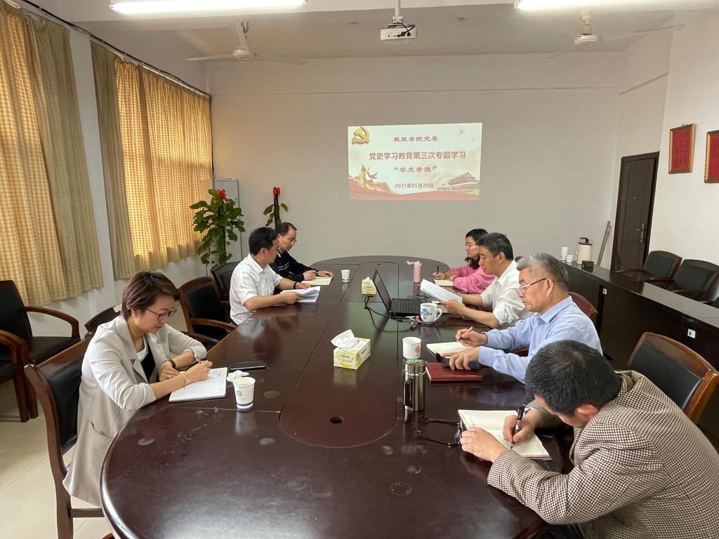 5月26日上午,学院党委中心组在开展党史学习教育“学史崇德”专题学习会。学院党委书记张宏伟主持,全体领导班子成员参加。