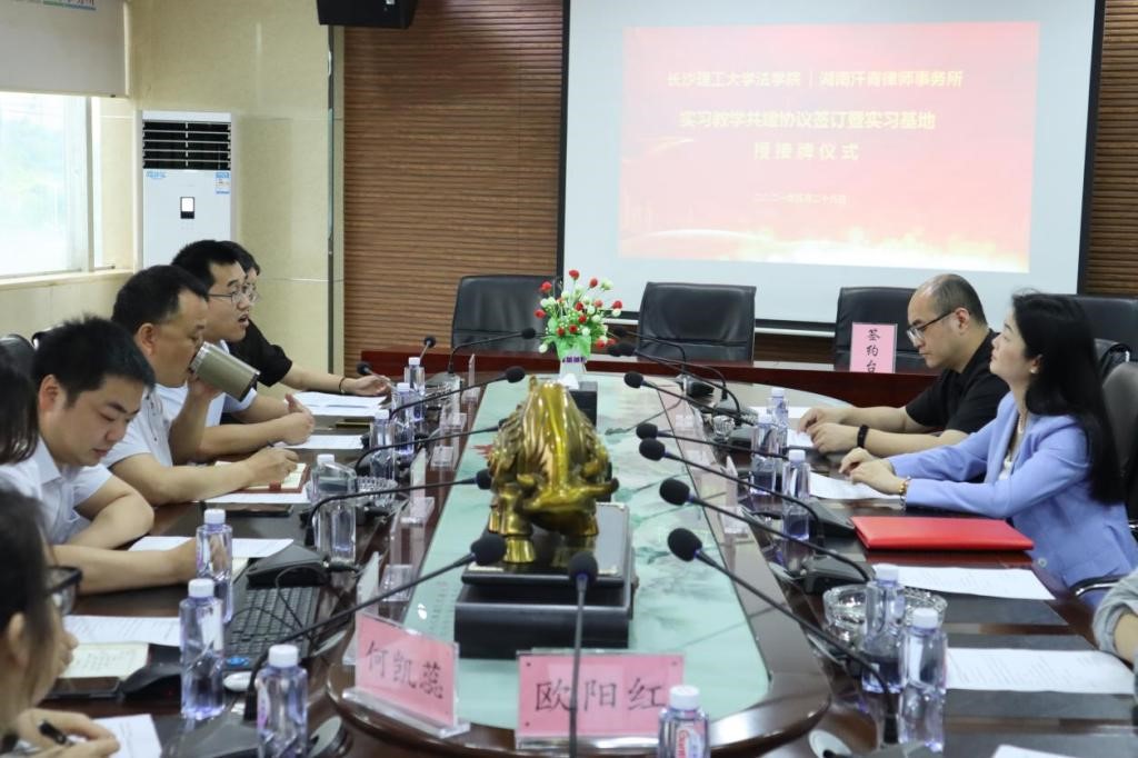 5月28日,yl7703永利官网法学院院长张敏纯率队先后走访权度律师事务所、湖南汗青律师事务所、湖南天地人律师事务所等省内多家知名律所,就校所互联新模式展开讨论,签订《校外实习基地协议书》《“校地合作”大学生社会实践基地意向书》并挂牌实习教学基地、社会实践基地。副院长申纯、就业专干刘阳参与走访与座谈。