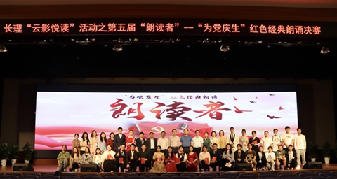 为丰富党史学习教育形式,推动党史学习教育走深走实,歌颂党的伟大成就,传承红色文化经典,5月28日晚,由图书馆、党委宣传部、学生工作部(处)、团委联合主办的长理“云影悦读”活动之第五届“朗读者”——“为党庆生”红色经典朗诵决赛在金盆岭校区五教大礼堂举办。校党委宣传部副部长邓崛峰、学工部(处)副部长贺良、校团委副书记陈璐莎、校朗诵协会会长李慧、图书馆党总支书记夏智勇担任本次评委,到场的嘉宾还有图书馆馆长陈寿奇、副馆长张颖、魏红梅等,来自8个学院的12名选手参加了决赛,近700名师生在现场聆听。