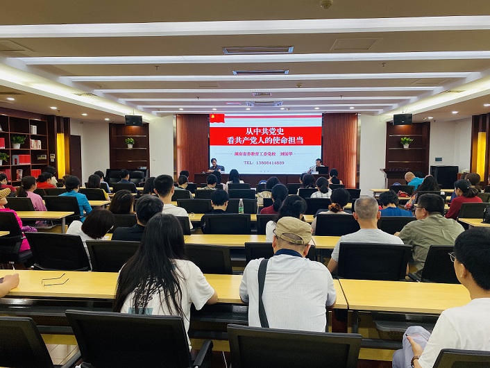 64日下午,图书馆在云影文化传播中心举办党史学习教育专题党课,邀请湖南省委教育工委党校常务副校长、省高校干部培训中心主任刘国华教授为全体职工上党课,图书馆馆长陈寿奇主持。