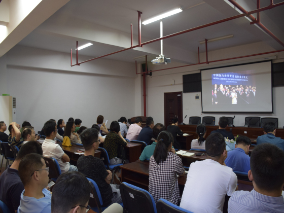 观看环节,在场人员聚精会神,认真聆听,通过两个视频内容的展现,教职工们更加深刻地认识到党引领开展的改革开放的必要性,坚定跟党走中国特色社会主义道路的正确性,体会到我国四十多年的深刻变革,科学社会主义发展在二十一世纪中国焕发出的强大生机活力。与会人员纷纷表示,将会以昂扬向上的斗志和奋发有为的精神状态投入到当前和今后的工作中,把“四史”学习党史教育融入到课程思政,把教书育人的使命勇扛在肩,以实际行动做推动学院事业改革发展的排头兵和先行者。