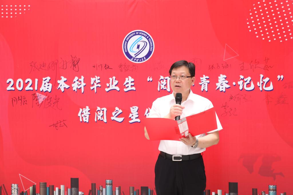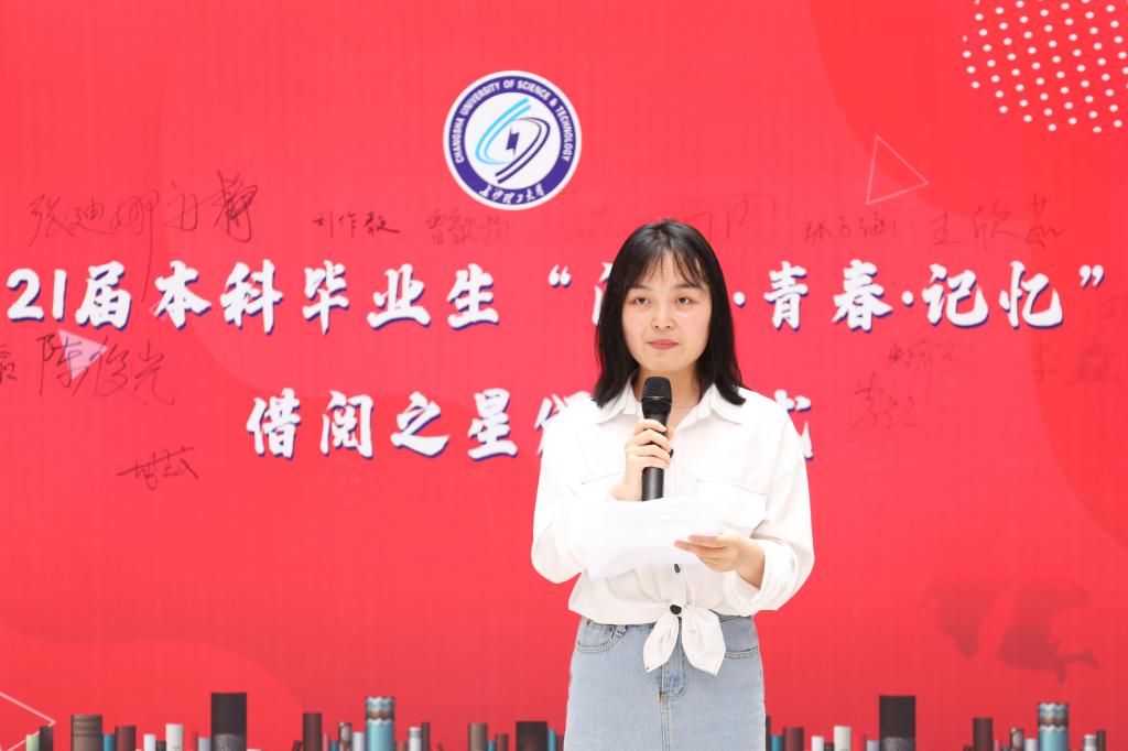 2021届本科毕业生全校阅读光荣榜第一名、借阅册数达331册的材料科学与工程学院张迪娜发言,分享了阅读心得感悟,表示要继续保持良好的阅读习惯,在新的人生旅程中,始终保持书香一路相伴。