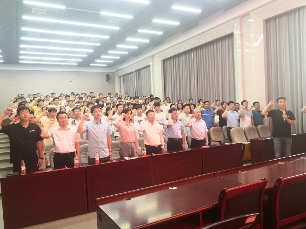 庆祝大会结束后,在学院党委副书记王煜坤带领下,全体党员同志重温了入党誓词。