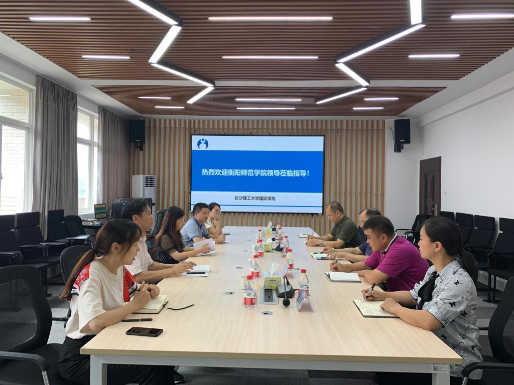 吴迪龙对衡阳师范学院一行表示热烈欢迎,详细介绍了学院办学定位、中外合作办学项目整体运行情况和人才培养现状。乔法光、秦卫星分别介绍了中外合作办学项目学生管理和引进课程取得的成绩和经验。