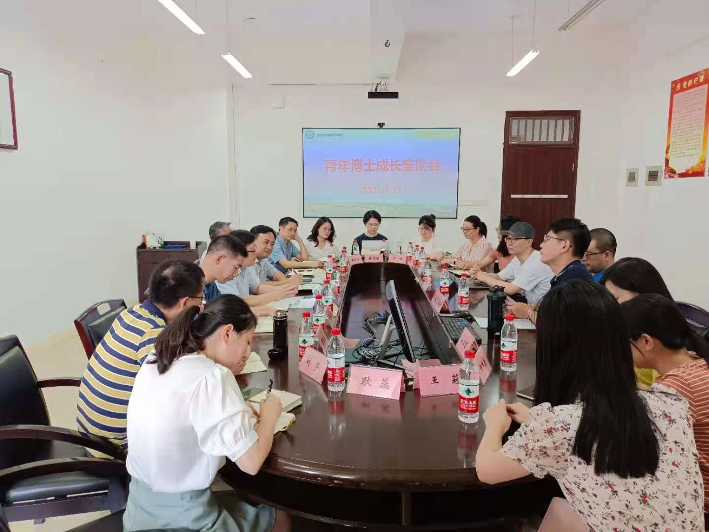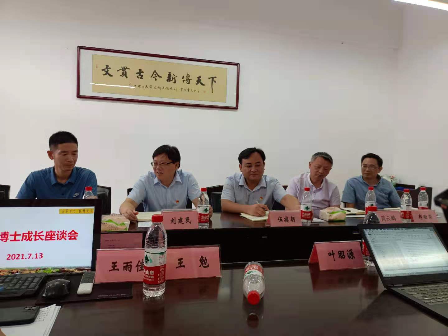 7月13日下午,刘建民副校长在云塘校区文科楼B505会议室召开文新学院青年博士座谈会,共话成长成才。文新学院领导班子成员、2019年以来入职的青年博士参加座谈,学院党委书记伍接朝主持座谈会。