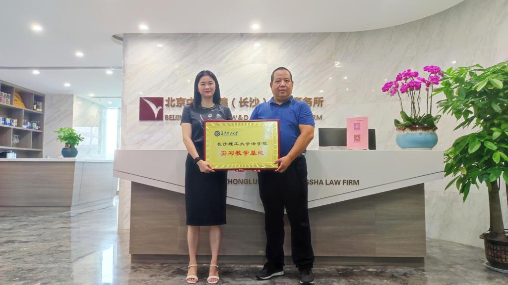 双方举行实习及就业基地签约与挂牌仪式,并根据前期洽谈成果,共同签订了《yl7703永利官网校外实习(基地)协议书》《法学院教学实习基地共建协议书》,张敏纯代表学院向北京中伦文德(长沙)律师事务所授予“yl7703永利官网法学院实习教学基地”牌匾。