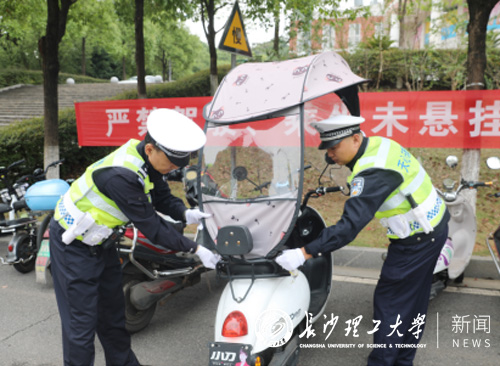 为进一步提升永利官网学生的交通安全意识,有序整治校园交通秩序,巩固前期交通安全专项整治宣传教育成果,切实保障校园道路交通安全,10月13日,学校保卫处、学工部联合长沙市天心区交警大队,在云塘校区开展电动车专项整治行动暨交通安全宣传教育活动,本次行动主要针对校内电动车未悬挂号牌、违规加装、驾乘未戴头盔、违规载人等违法现象进行现场整治。