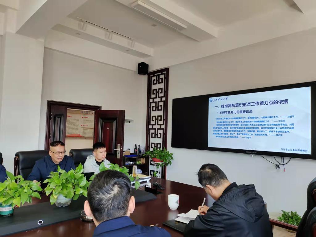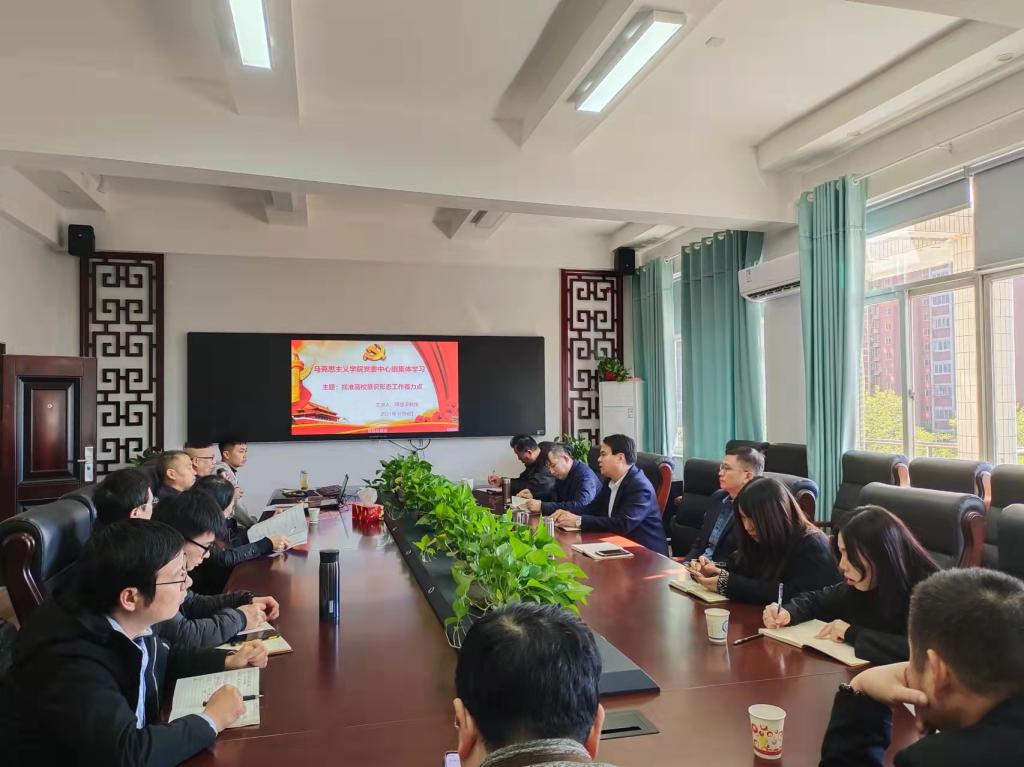 根据校党委相关文件安排,结合永利官网马克思主义学院实际,马克思主义学院于11月8日上午云塘校区文科楼学院会议室举行学院党委中心组集体学习。本次学习主题为《找准高校意识形态工作着力点》,由学院教授、博士生导师蒋显荣主讲。学院党委委员、副科职及以上干部、工会主席、教授委员会正副主任、近五年入职的青年博士等一同参加了本次学习。本次集体学习学院党委书记易显飞教授主持。