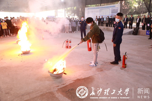 活动分为两个阶段,第一阶段为消防安全知识讲座与灭火演示活动。湖南省消防救援总队和湖南省消防产品监督检验授权站的两位工程师向大家讲解了消防基础知识、常见消防设施器材、火灾扑救及逃生自救、日常消防检查等知识。多名师生用灭火器对模拟火灾现场进行扑灭处理。第二阶段为应急疏散演练。