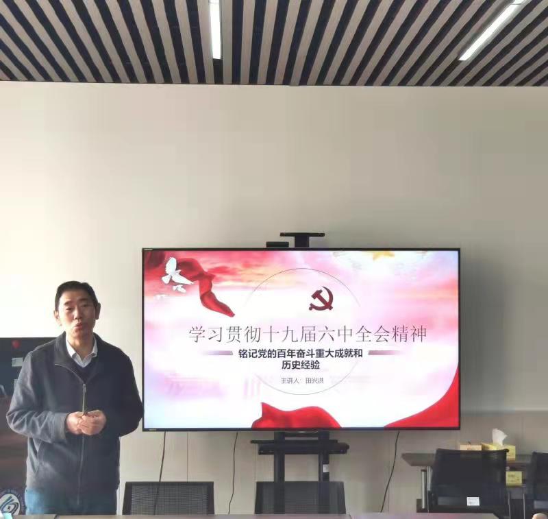 院党总支书记田兴洪作题为《学习贯彻十九届六中全会精神,为学校决胜建成“百强”大学做贡献》的学习辅导报告。报告从全会的重要内容、《中国共产党第十九届中央委员会第六次全体会议公报》的主要内容、《中共中央关于党的百年奋斗重大成就和历史经验的决议》的简要解读等三个方面,对全会精神进行较为细致、深入的解读。