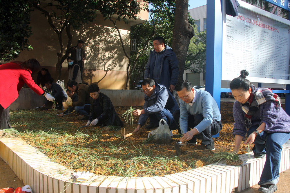 11月30日下午,继续教育学院在金盆岭校区14教正前坪开展了校园花草义务种植劳动的主题党日活动,学院教职工党员积极参加。
