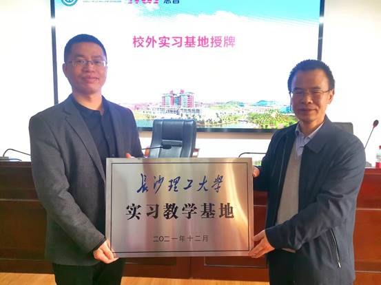 湛雪辉为企业授予了校外实习基地的牌匾,并为聘任的两位企业导师湖南恩智测控技术有限公司总经理吴宏、研发总监杨细芳颁发了聘书。