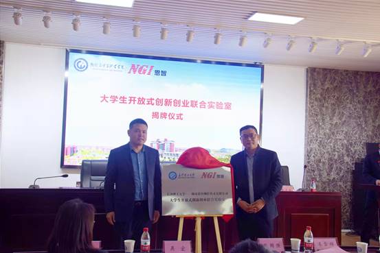 会上,双方代表签署了校企产学研合作协议书,并共同为大学生开放式创新创业联合实验室进行了揭牌。湖南恩智测控技术有限公司现场为共建实验室捐赠第一批价值6万余元的仪器设备。