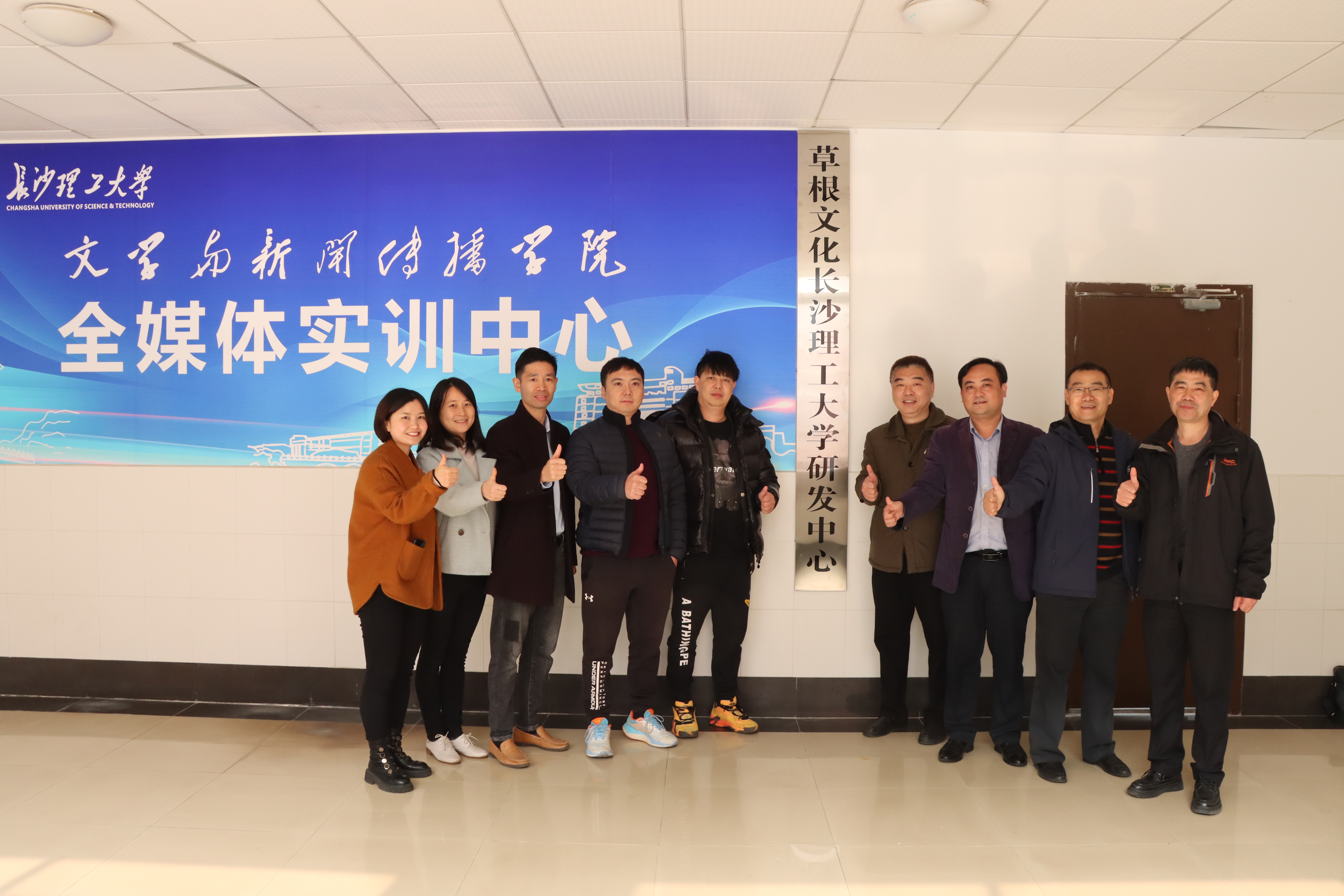 12月11日上午,湖南草根文化传媒有限公司、yl7703永利官网发展基金捐赠仪式、草根文化yl7703永利官网研发中心揭牌仪式在文科楼B区文学与新闻传播学院全媒体实训中心举行。yl7703永利官网校友中心副主任肖晖,文学与新闻传播学院党委书记伍接朝、院长刘建新、副院长魏桃初、党委副书记刘莎、新闻系主任赵继光,学工办主任楚艳鸽以及湖南草根文化传媒有限公司创始人段明、潘佳君出席,仪式由院长刘建新主持。