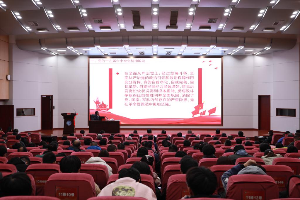 12月14日,校党委委员、副校长胡永乐在图书馆报告厅作“学习贯彻党的十九届六中全会精神”专题报告,汽机学院、体育学院全体教职工及学生代表参与学习。报告会由汽机学院党委书记施一满主持。