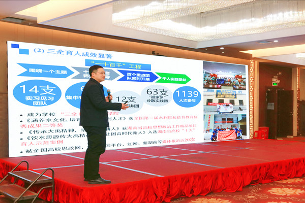 黄创霞充分肯定了水利学院此次表彰大会在全院教师中起到的激励作用。他谈到,在学校党委的正确领导下,学院全体师生努力拼搏,近几年飞速发展,取得了可喜成绩。希望学院全体教师继续保持拼劲,在未来持续发力,推动学校“双主体发展”,助力学校实现“百强”。
