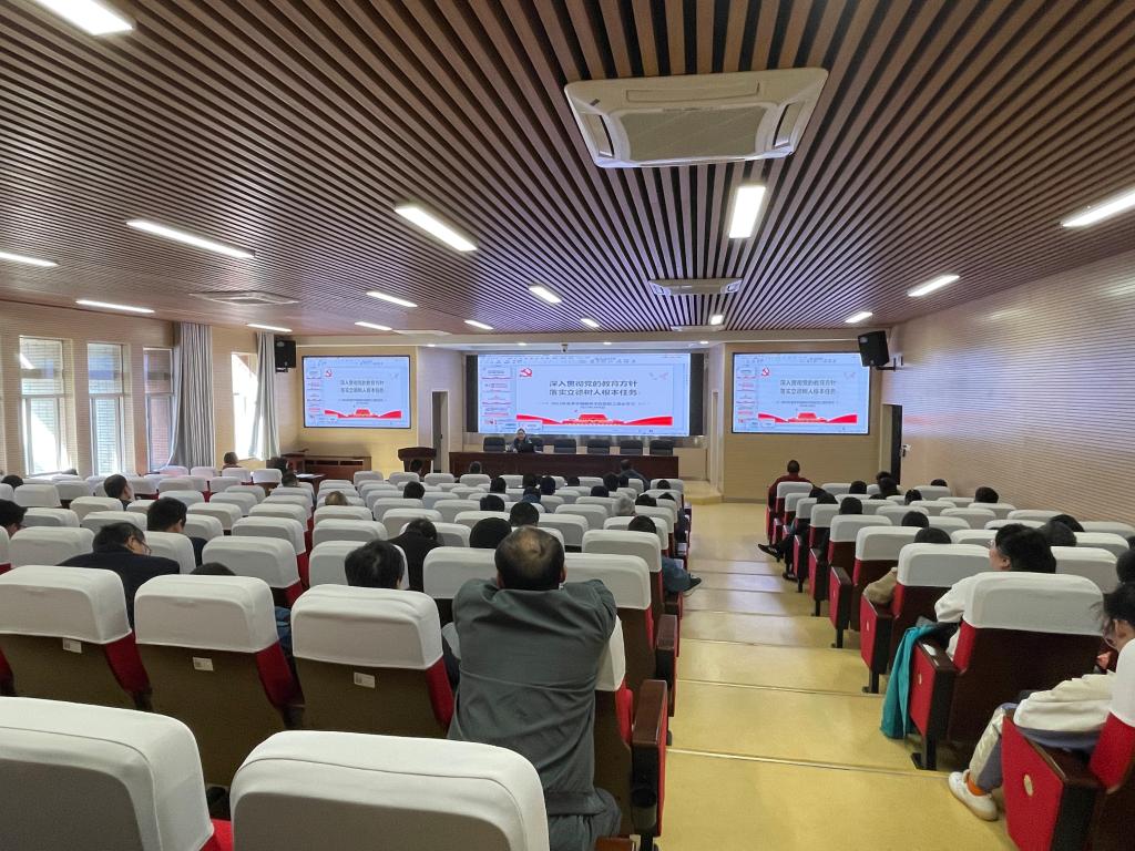 邓崛峰从新中国党的教育方针的历史变迁、新时代党的教育方针的总要求和特点、新形势下学校学院发展对教师的新要求三个方面,深入阐述了在新形势下学习、领会和贯彻党的教育方针的重要性。邓崛峰指出,新时代党的教育方针,是党不断适应时代要求,总结教育规律,把握社会发展和人的发展要求而提出的教育事业行动指南,要对标党的教育方针,围绕“培养什么人、怎样培养人、为谁培养人”这一根本问题,坚持社会主义办学方向,落实立德树人根本任务,坚持教育“四个服务”的根本宗旨,努力培养德智体美劳全面发展的社会主义建设者和接班人。