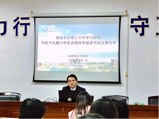 3月1日下午,马克思主义学院党委在云塘校区文科楼C202组织全院教职工学习校党委书记付宏渊在“学习贯彻党的十九届六中全会精神专题读书班”上的报告精神。此次学习由马克思主义学院党委书记易显飞主讲,学院院长陈万球主持。