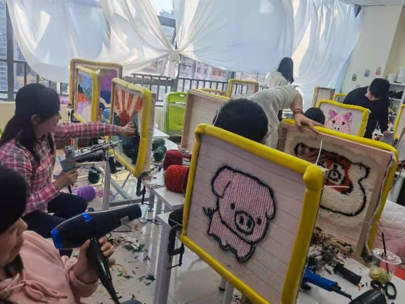 活动现场中,每位老师自己设计、制作个性Tufting作品。Tufting意为簇绒,是一种手工DIY用来制作地毯和保暖服装的工艺,形态蓬松、毛茸,近年来Tufting纺织类手工成为了解压、休闲的新方式。女教师们结合自身的奇思妙想和审美情趣,通过灵巧的双手,边学边做,完成了一件件精美的DIY作品,令人赏心悦目,现场洋溢着欢乐的笑声。现场还准备了精致的点心和饮品,希望辛苦了一年的妇女教师,能在本次活动中收获温暖与关怀。