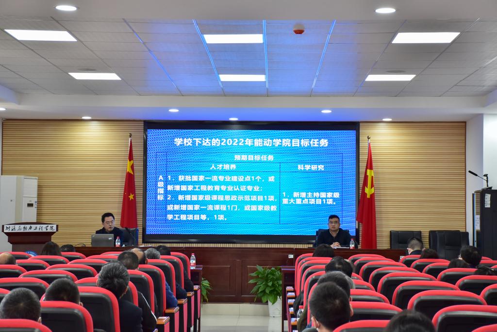 院长陈荐梳理了学校下达的2022年能动学院目标任务,逐条分析学院目标任务,部署相关工作。陈荐表示,学院将重点推动师资队伍、专业建设、科学研究、人才培养等工作,鼓励教职工继续为推动学院高质量发展不懈奋斗。