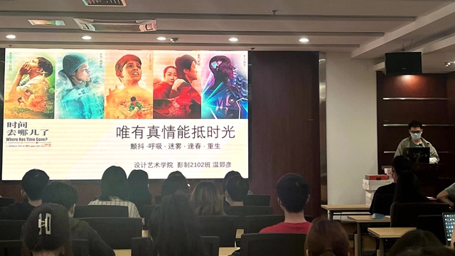 分享会现场首先播放了中国的短片《逢春》,随后温郅彦同学对这部影片做一个推荐,并与现场观众进行自由交流。“时间稍纵即逝,但爱终将成为永恒。因为,唯有真情,能抵时光。”温同学影评中的这段话成为在场观众的共鸣。交流结束后,邓婕、刘瑛为影评大赛中获奖的影评人颁发荣誉证书与奖品并合影留念。最后播放与欣赏剩余短片。