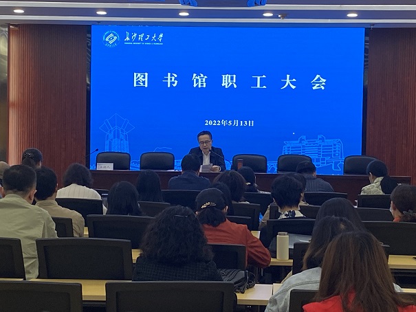 5月13日下午,图书馆在云塘馆云影文化传播中心召开全馆职工大会,会议由副馆长刘利主持。