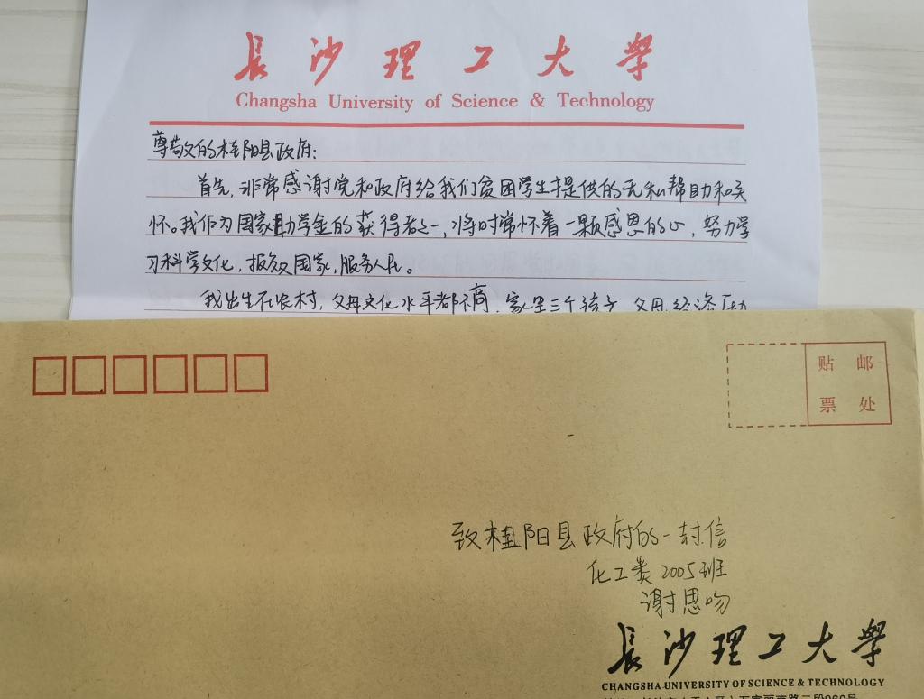 “我要感谢国家,她帮助了很多像我这样的家庭贫困的学生,让我们能够更好地完成自己的学业,更加用心学习。”化学化工学院一位家困生在书信里抒发自己对国家的感恩之情,这也是化学化工学院近期开展的“感恩于心、诚信于行”资助育人系列活动之一。